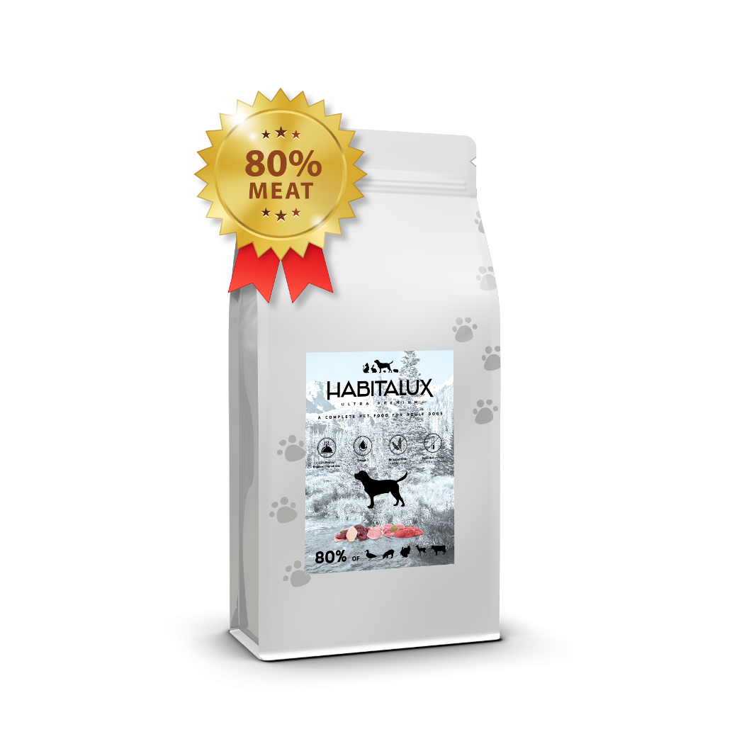 80% Duck, Pork, Turkey & Beef: Freshly Prepared Duck 52%, Dried Pork 11%, Freshly Prepared Turkey 6%, Freshly Prepared Beef 5%, Freshly Prepared Angus Beef 4%, Turkey Stock 2%; 17% Vegetable Medley: Sweet Potato 7%, Beet Pulp, Tapioca, Lentils, Chickpeas, Vegetable Stock, Dried Pumpkin, Dried Carrot, Dried Spinach; Minerals, Vitamins; Additional Extras, Fruits, Herbs & Botanical Mix: Dried Egg, Salmon Oil, Linseed, MOS (530 mg/kg), FOS (530 mg/kg), Dried Apple, Dried Seaweed, Dried Cranberry, Glucosamine (180 mg/kg), Methylsulfonylmethane (180 mg/kg), Chondroitin Sulphate (125nmg/kg), Camomile, Burdock Root, Aniseed & Fenugreek, Peppermint, Marigold, Grapeseed Extract, Green Tea Extract, Dried Dandelion, Dried Bilberry, Ginseng, Thyme, Majoram, Oregano, Parsley, Sage, Yucca Schidigera Extract.